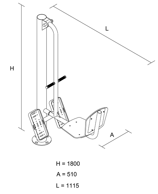 Gimnasio alaire libre modelo Mupa Gym 008Sfabricado con tubocentral de 4”encedula30, bastones de carga en tubo de 1 1/2" cedula 30 y piezas giratorias mediante rodamientosde acero.Asiento fabricado a base de polietileno de alta densidad sobre placa de acero y fijado mediante tornillos gota inoxidablesBases para pies en lámina antiderrapante calibre 14 fijadas con tornillos coche inoxidable.Sistema de atornillado antivandálico con regatones para protección y resguardo de tornillería.Tornillería galvanizada con rondanas planas, rondanas de presión, tuercas de seguridad además de la aplicación de pegamentoespecialpara cuerdas.