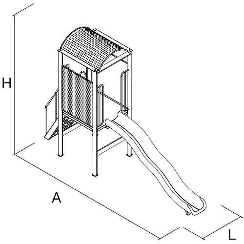 Incluye: Torre de acceso y resbaladilla de H 1.100 mts, L: 2.478 mts de polietileno rotomoldeado de doble pared para parques públicos Materiales: Estructura de acero; Barandales de lámina perforada; Piso antiderrapante Acabado: Pintura poliéster electroestática en polvo horneada tratamiento anticorrosivo a base de tinas de fosfatos y sellos orgánicos